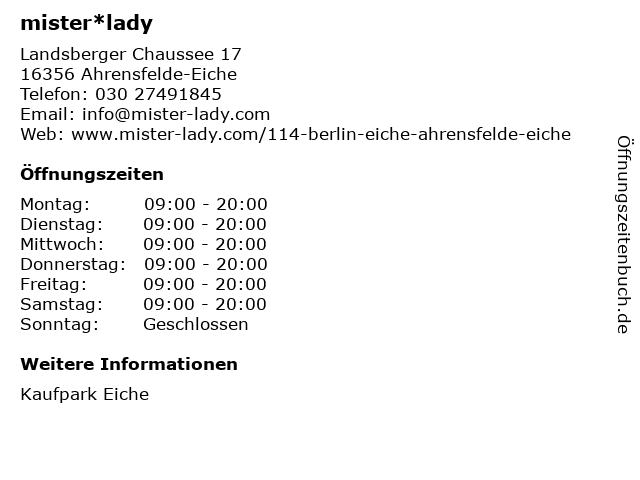 ᐅ offnungszeiten mister lady gmbh co kg landsberger chaussee 17 in ahrensfelde