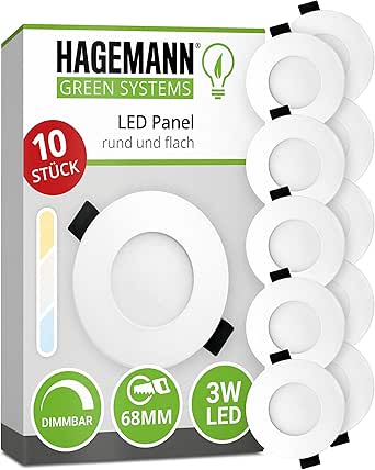hagemann 10 x led deckeneinbauspot dimmbar 3 watt 255lm ip20 o 68 mm bohrloch 230v panellampe led einbauleuchte ersetzt 25 w halogen amazon de beleuchtung