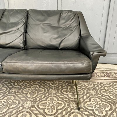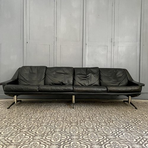 vintage danish mid century langenfeld esa 3 person black leather sofa 1960 s vinterior